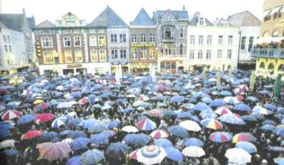 Verschillende kranten, 26 oktober, 2002. Zee van paraplu's bij stille